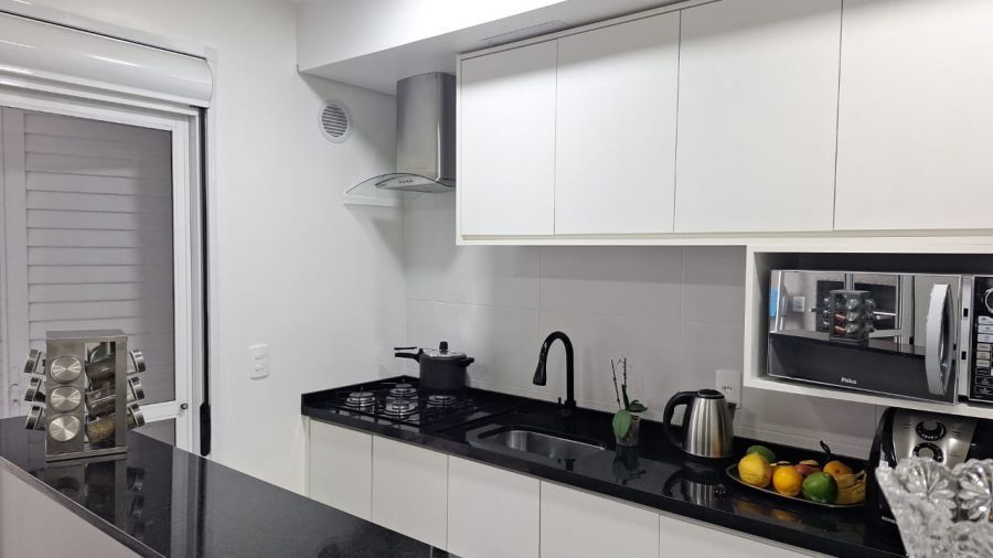 Ficam móveis planejados, torneira gourmet e exaustor na cozinha, dois ares condicionados Midea 12 mil Btus, telas de inseto e aquecedor de água.