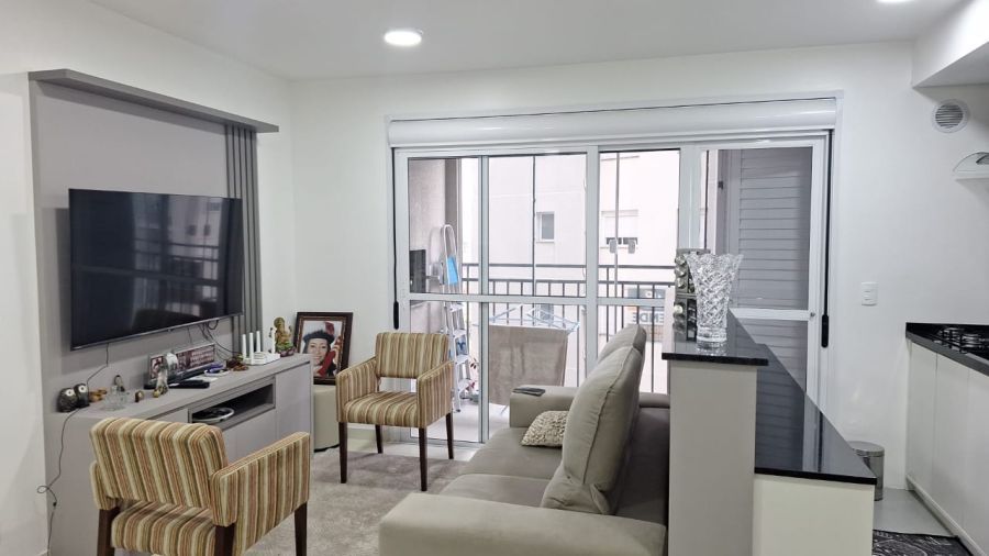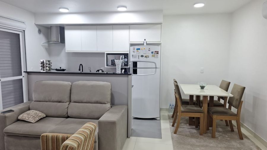 Apartamento distribuído por 02 dormitórios, sendo 01 suíte, 01 banheiros, sala de estar e jantar, cozinha americana, sacada com churrasqueira e 1 vagas de garagem.