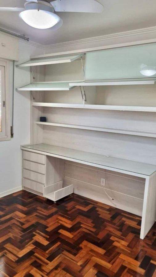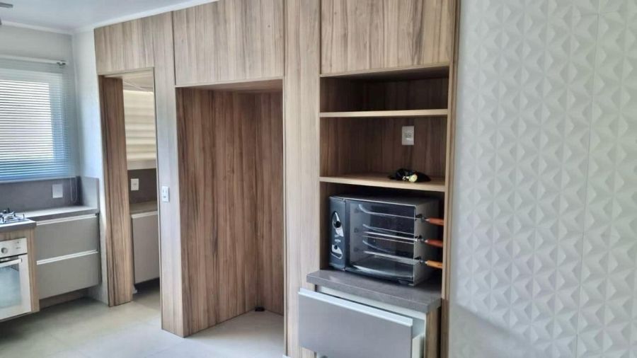 Ficam todos os móveis planejados.