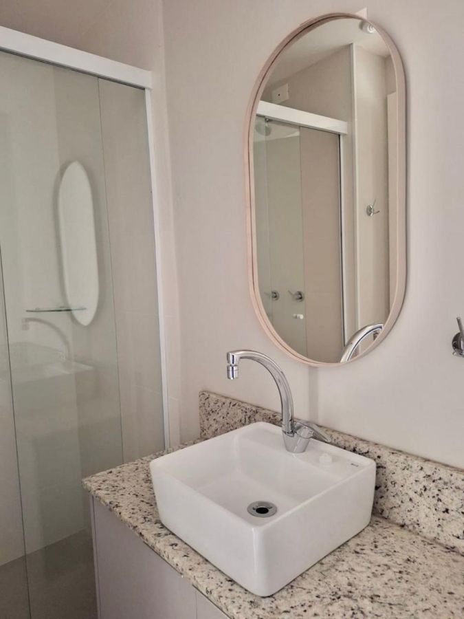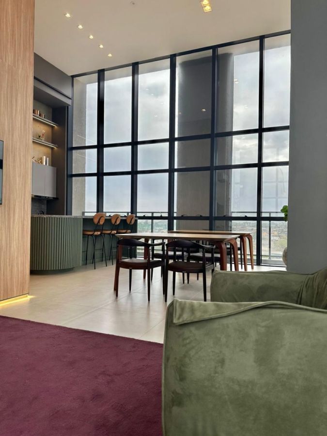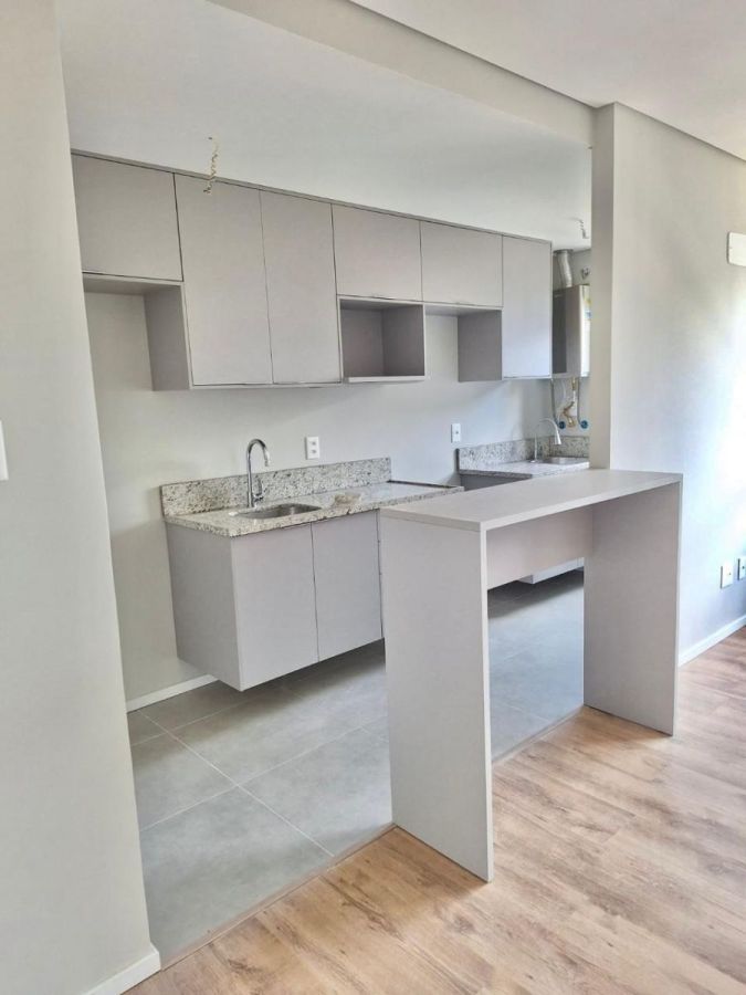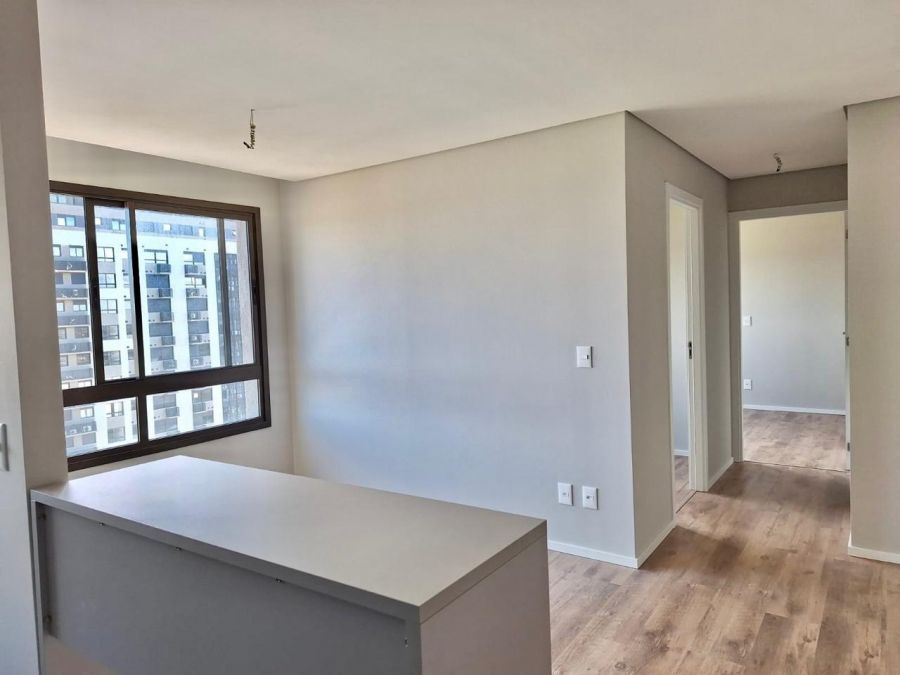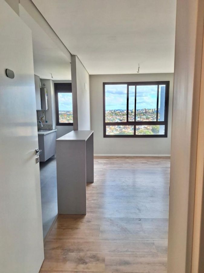 Possui sala de estar e jantar, cozinha mobiliada integrada, banheiro mobiliado e com box de vidro, dois dormitórios e área de serviço.