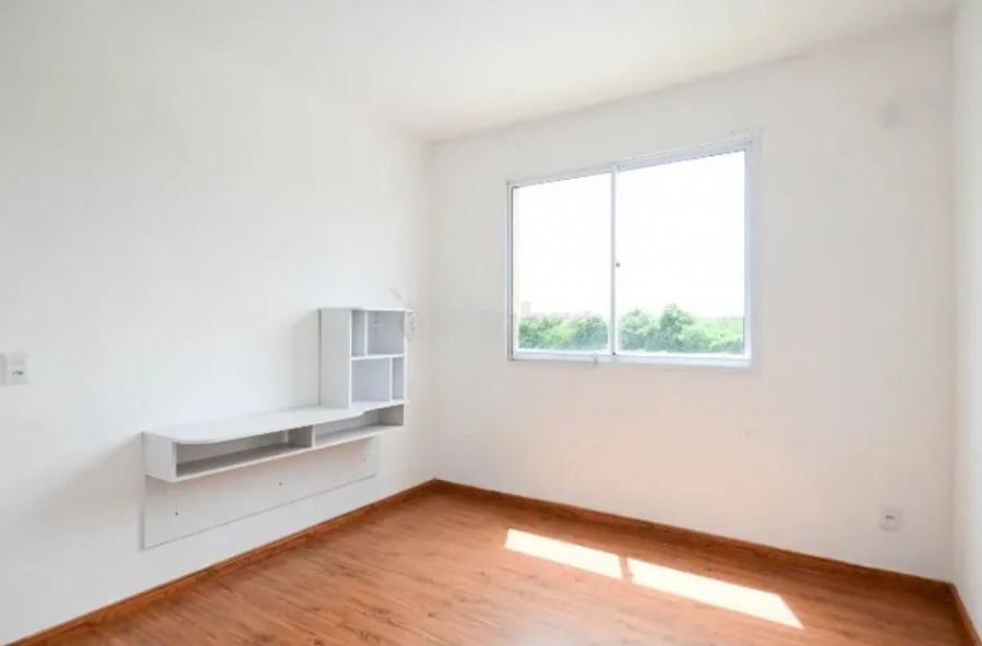 Distribuído em sala de estar, cozinha mobiliada com móveis planejados, banheiro equipado com box de vidro e dois dormitórios, sendo um semi mobiliado com cama box de solteiro e guarda-roupas.