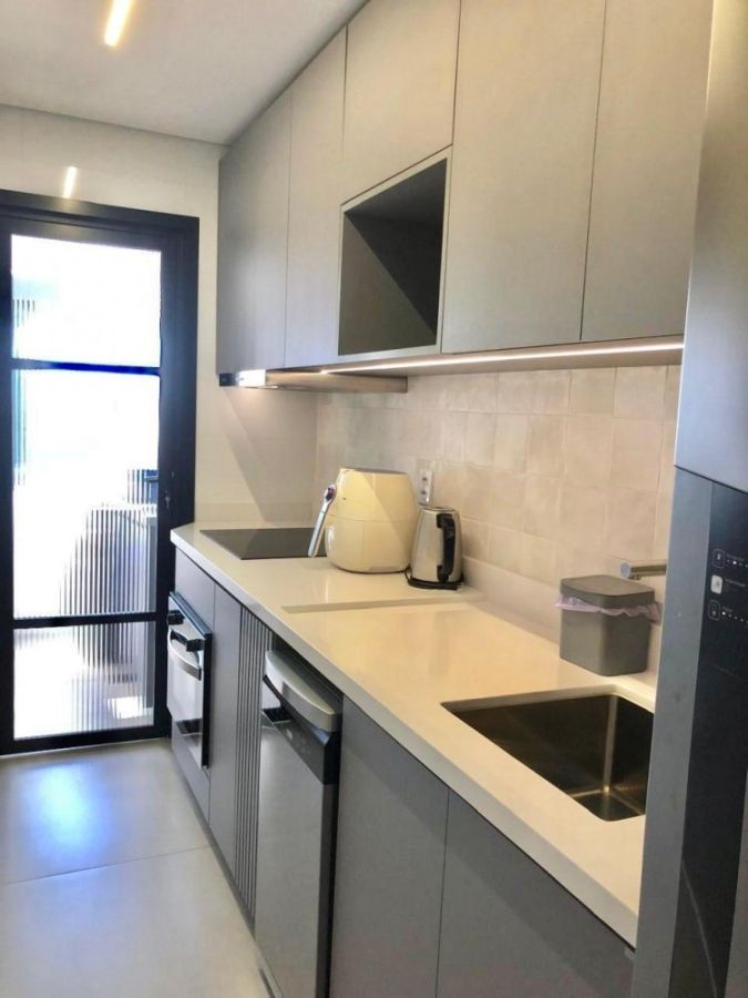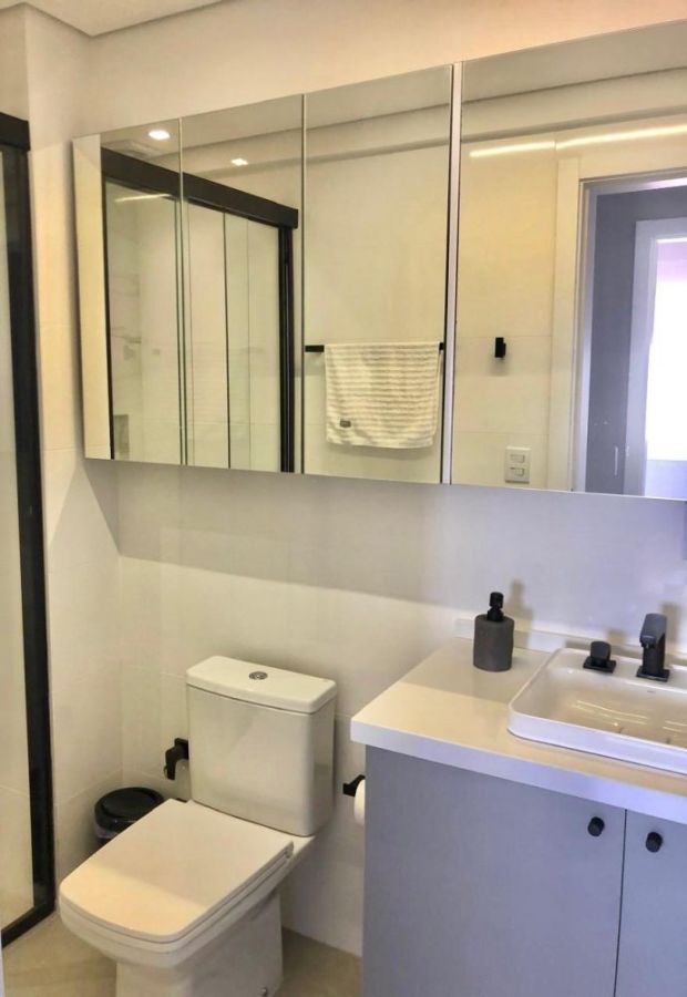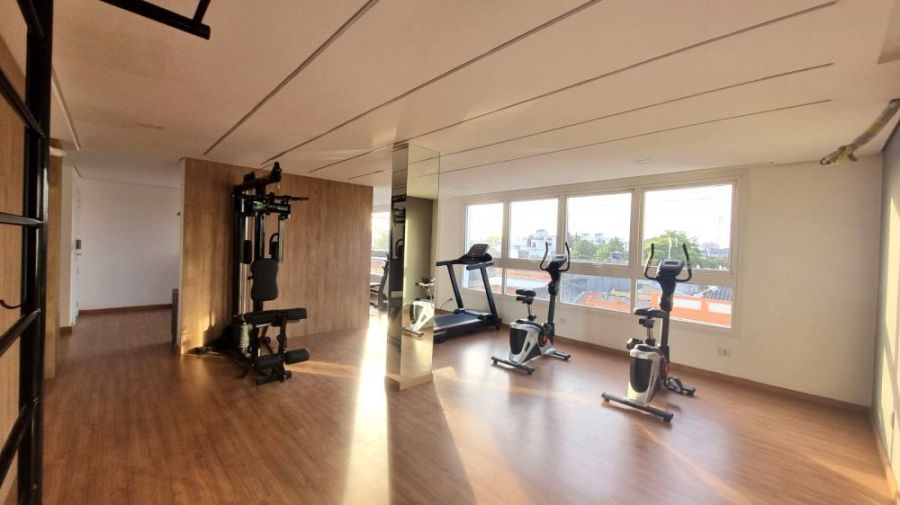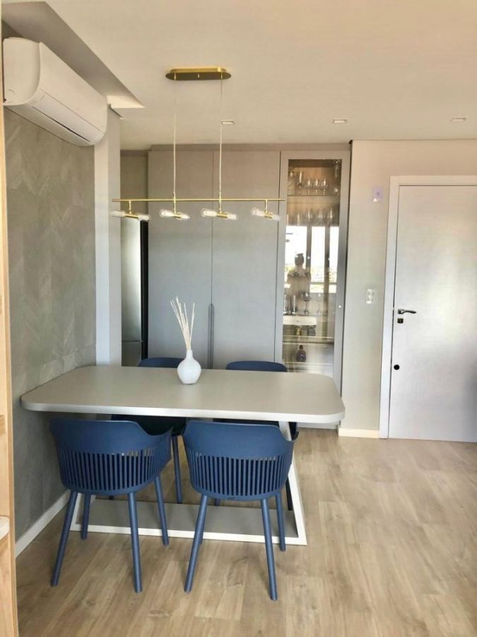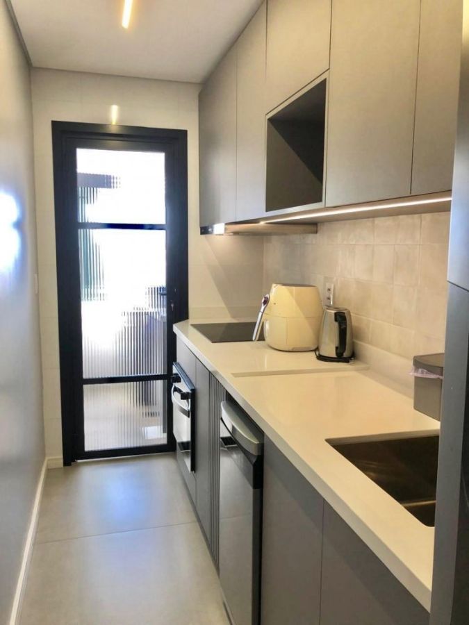 O apartamento possui sala de estar com sacada e churrasqueira, 2 dormitórios, sendo 1 suíte, cozinha, área de serviço, banheiro social e uma vaga de garagem coberta.