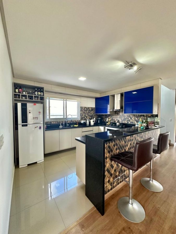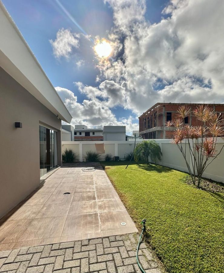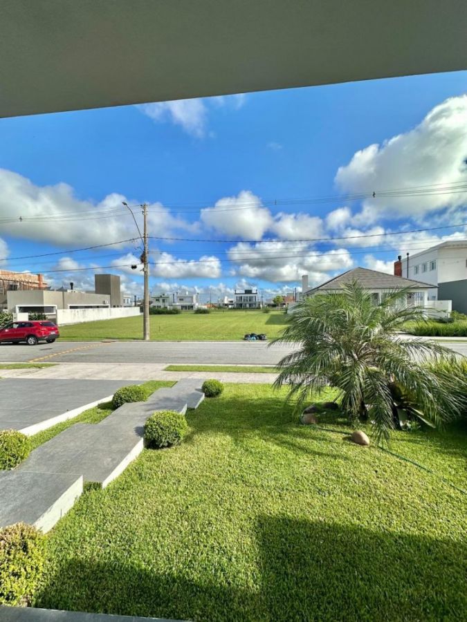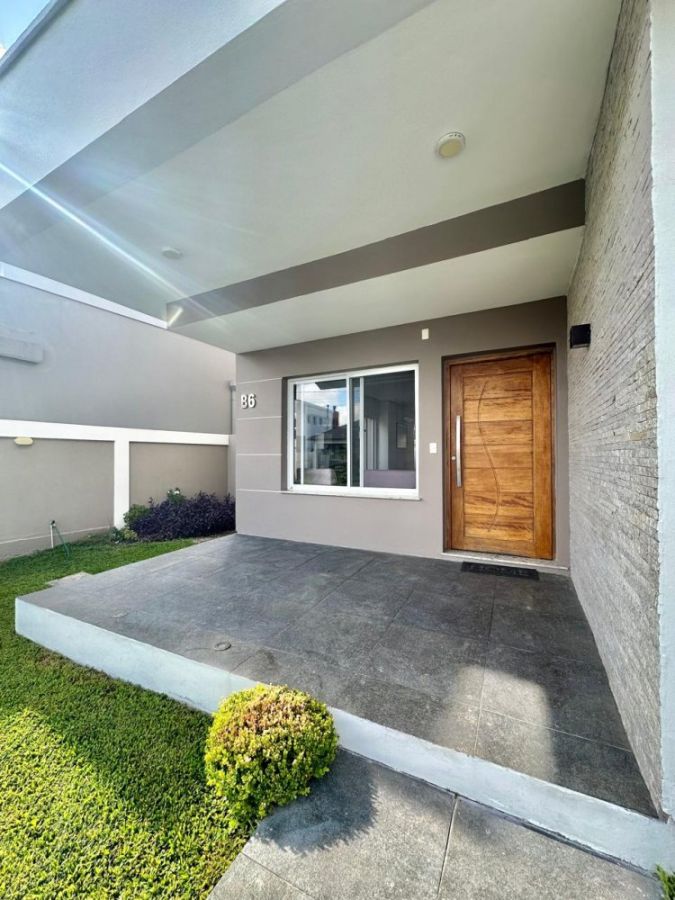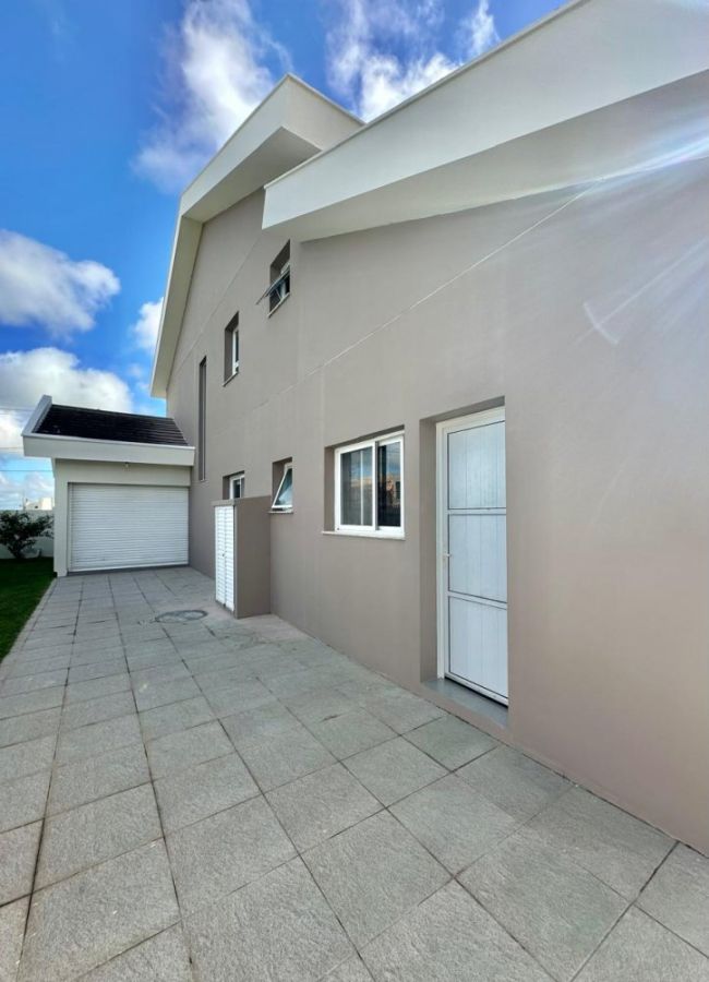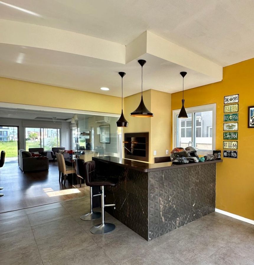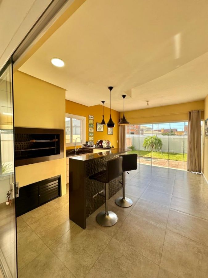 No pavimento térreo, o imóvel possui sala de estar e jantar integrados, cozinha americana, banheiro, espaço goumet com churrasqueira, pátio e vaga para dois carros.