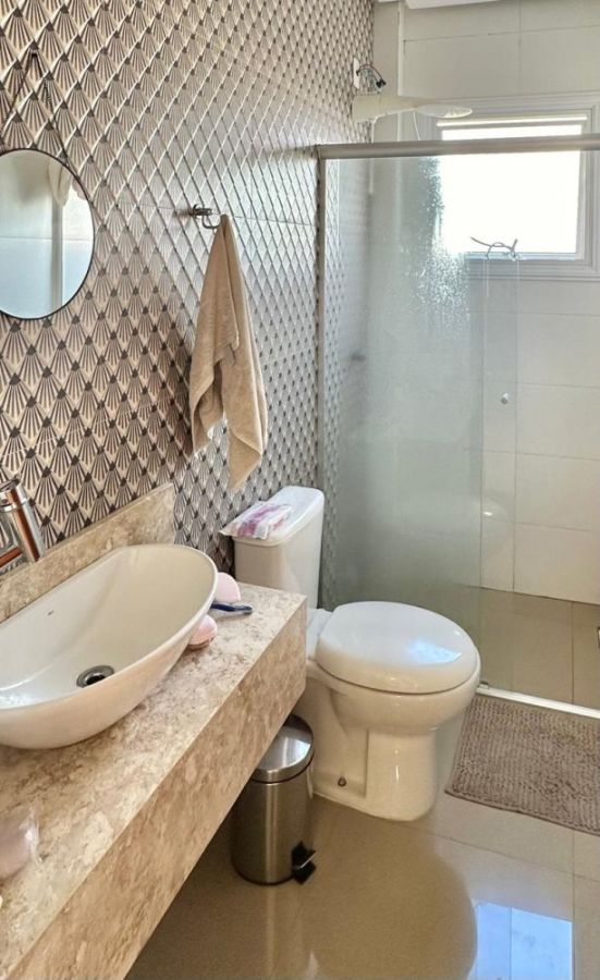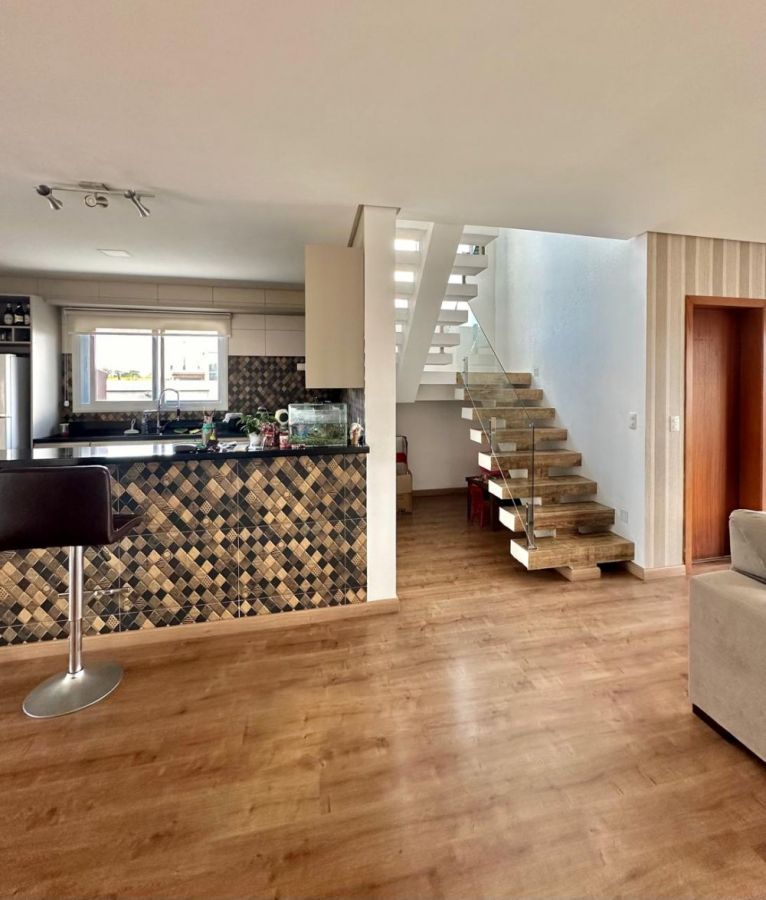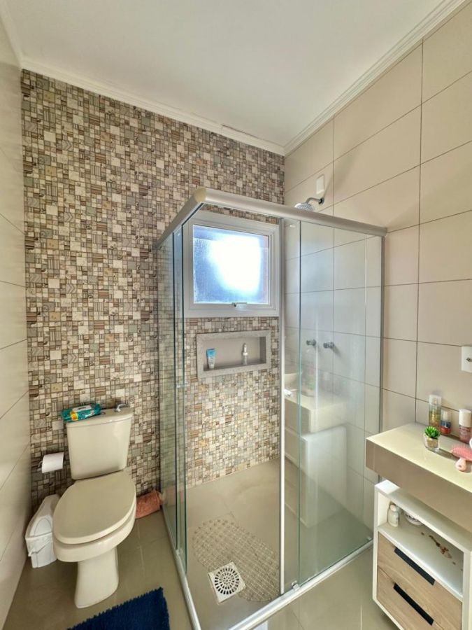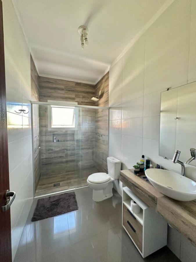 No pavimento superior, 3 dormitórios, sendo uma suíte com closet e um banheiro completo.