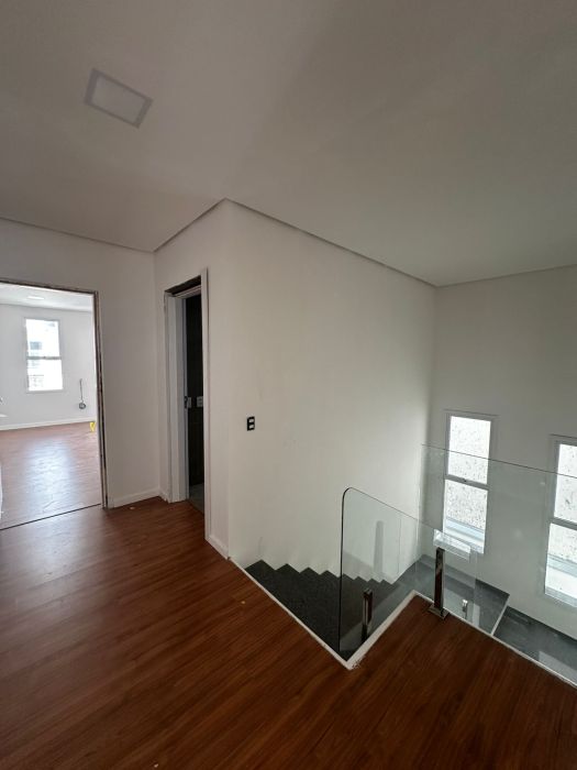 No pavimento superior possui 3 dormitórios, sendo um suíte com varanda e um banheiro completo.