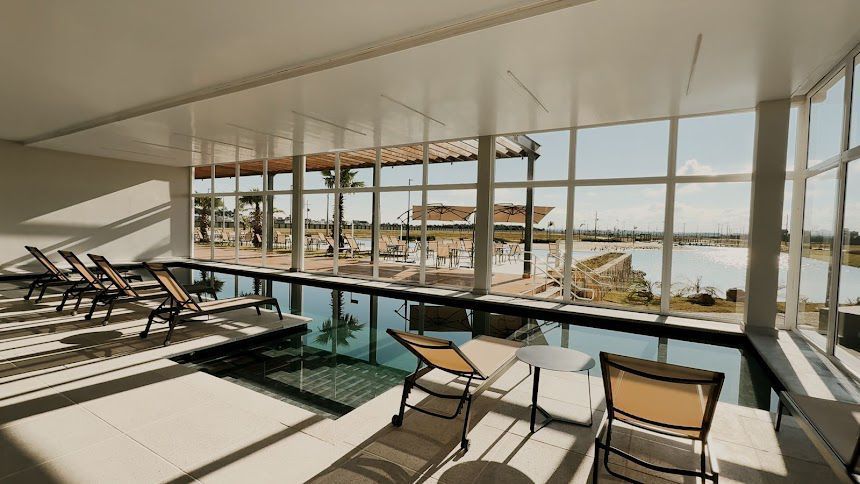 Diferenciais do empreendimento: Quadras de padell, tênis, futebol, beach tennis, poliesportiva, espaços parrilla/pizza, gourmet, cinema, kids, relax, jogos, redário, fogo de chão, salão de festas, restaurante, bar da piscina, piscina infantil, piscina térmica com spa, praia artificial, deck molhado, playground, academia, trilha ecológica, pista de caminhada, e muito mais!